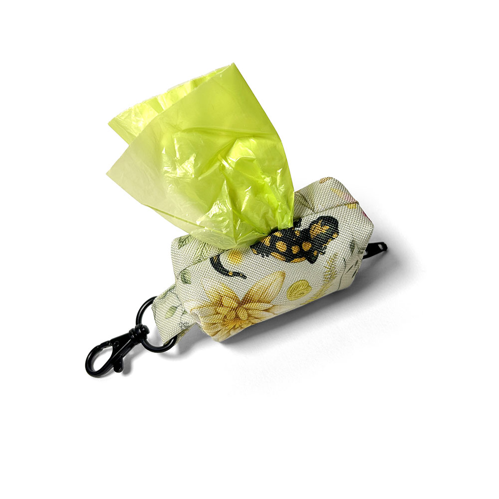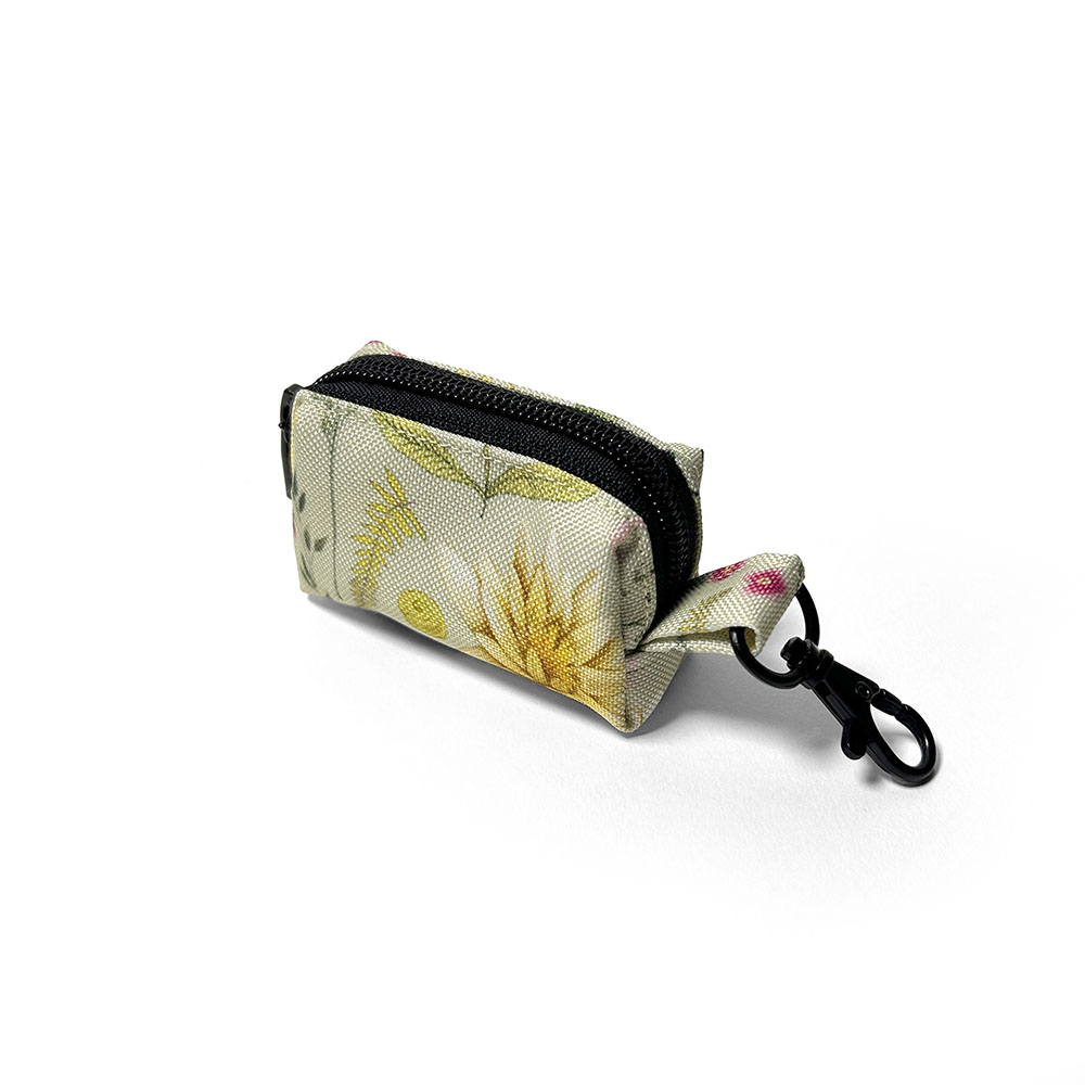 Etui na kupoworki wykonane z tkaniny wodoodpornej zamykane na zamek błyskawiczny. Saszetka posiada otwór umożliwiający szybkie wyciąganie woreczków i lekki karabińczyk, który pozwala przypiąć opakowanie do smyczy, by było ono zawsze pod ręką. Wzór LAKESIDE SAGE w kolorze jasnej zieleni inspirowany jest ekosystemem pięknej nadjeziornej scenerii. Lilie wodne, ważki, salamandry i różnorodne roślinne elementy jak z ogrodu japońskiego, tworzą kompozycję, która przenosi nas prosto nad jezioro w środku lata. Akcesoria z tym printem są nie tylko wygodne i trwałe, ale też pełne uroku. Idealne dla psów, które lubią przygody w plenerze i dużą dawkę stylu podczas każdej wyprawy.