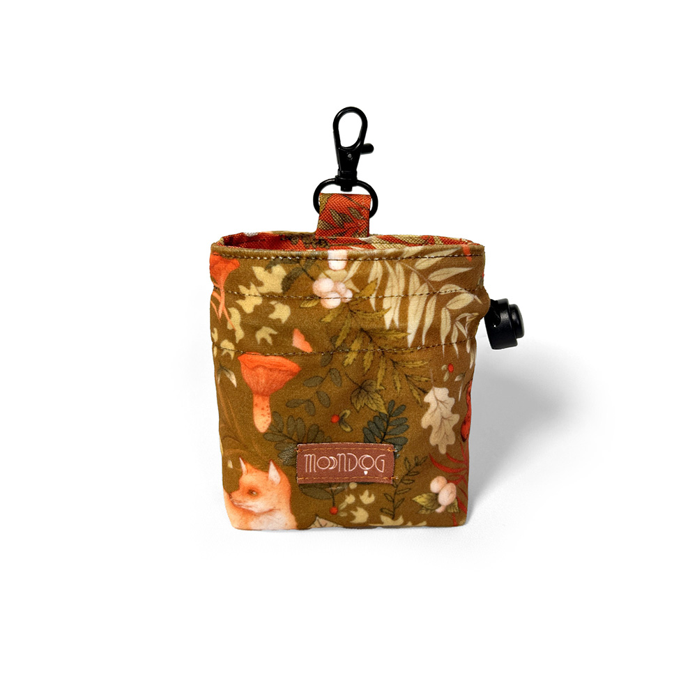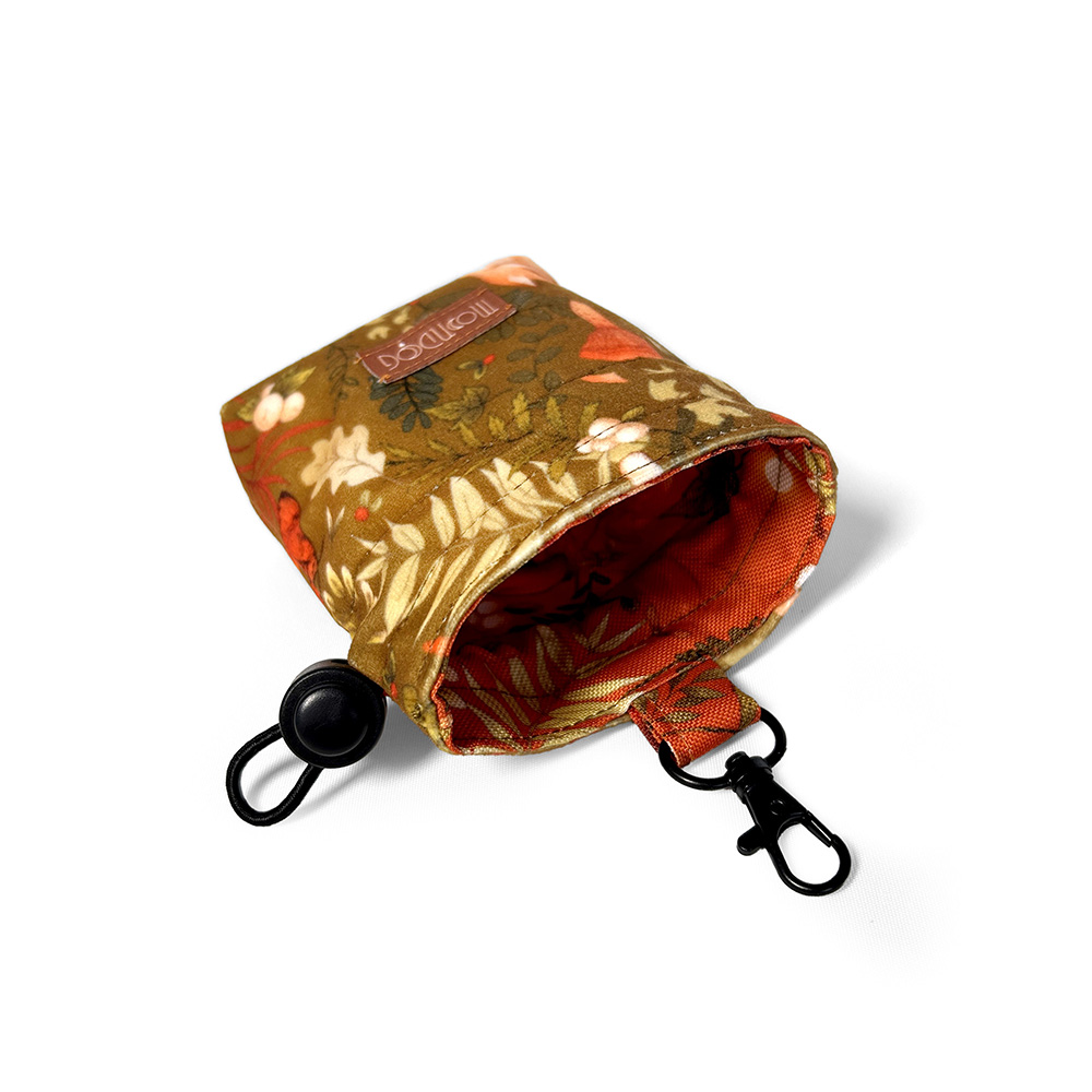 Mała saszetka na przysmaki dla psa wykonana z miękkiego weluru i podszewki z tkaniny wodoodpornej o wymiarach. Wzór AUTUMN to hołd dla jesieni w jej najpiękniejszym wydaniu. Saszetki posiadają lekki karabińczyk umożliwiający wygodne przypięcie ich do smyczy lub ubrania, oraz gumkę ze stoperem.