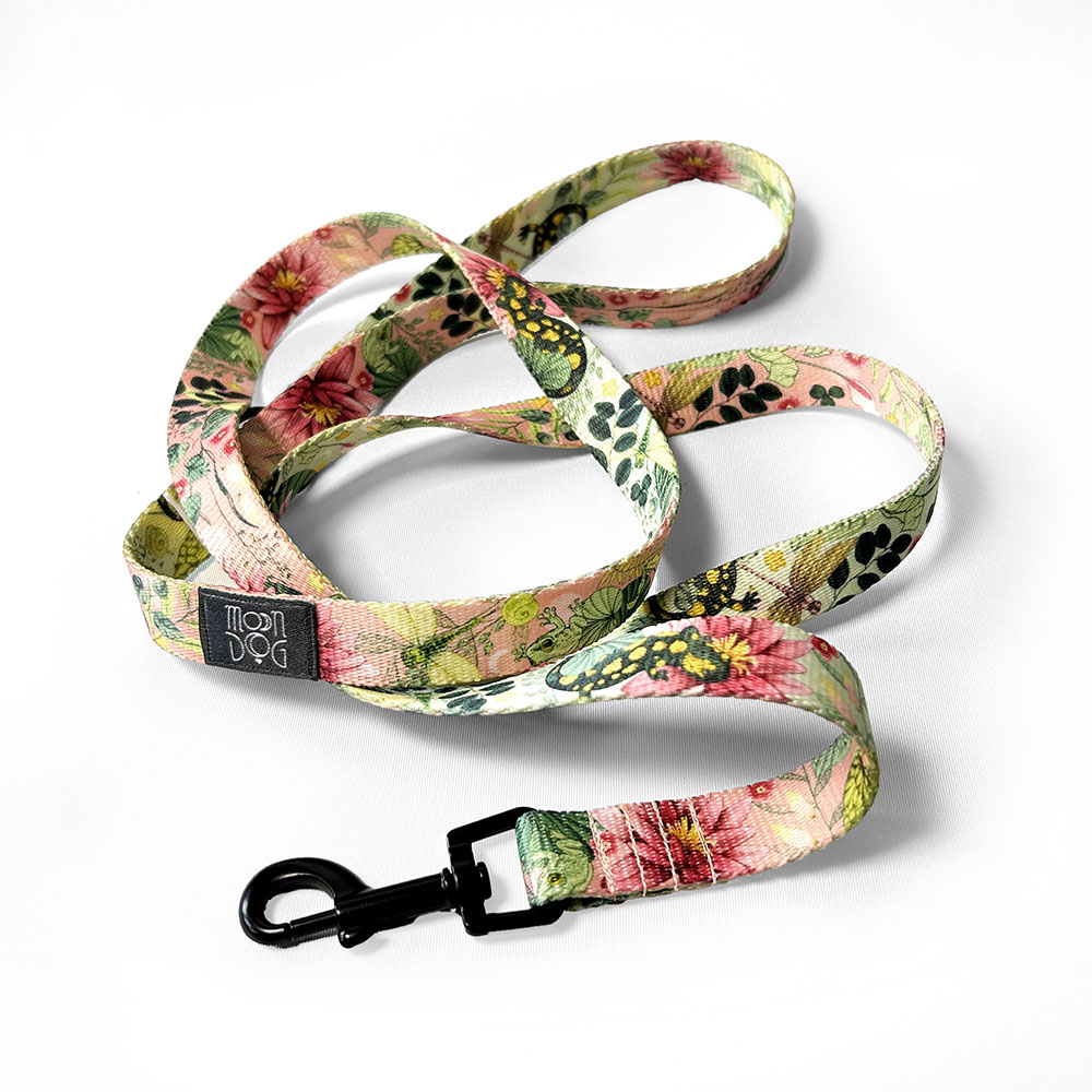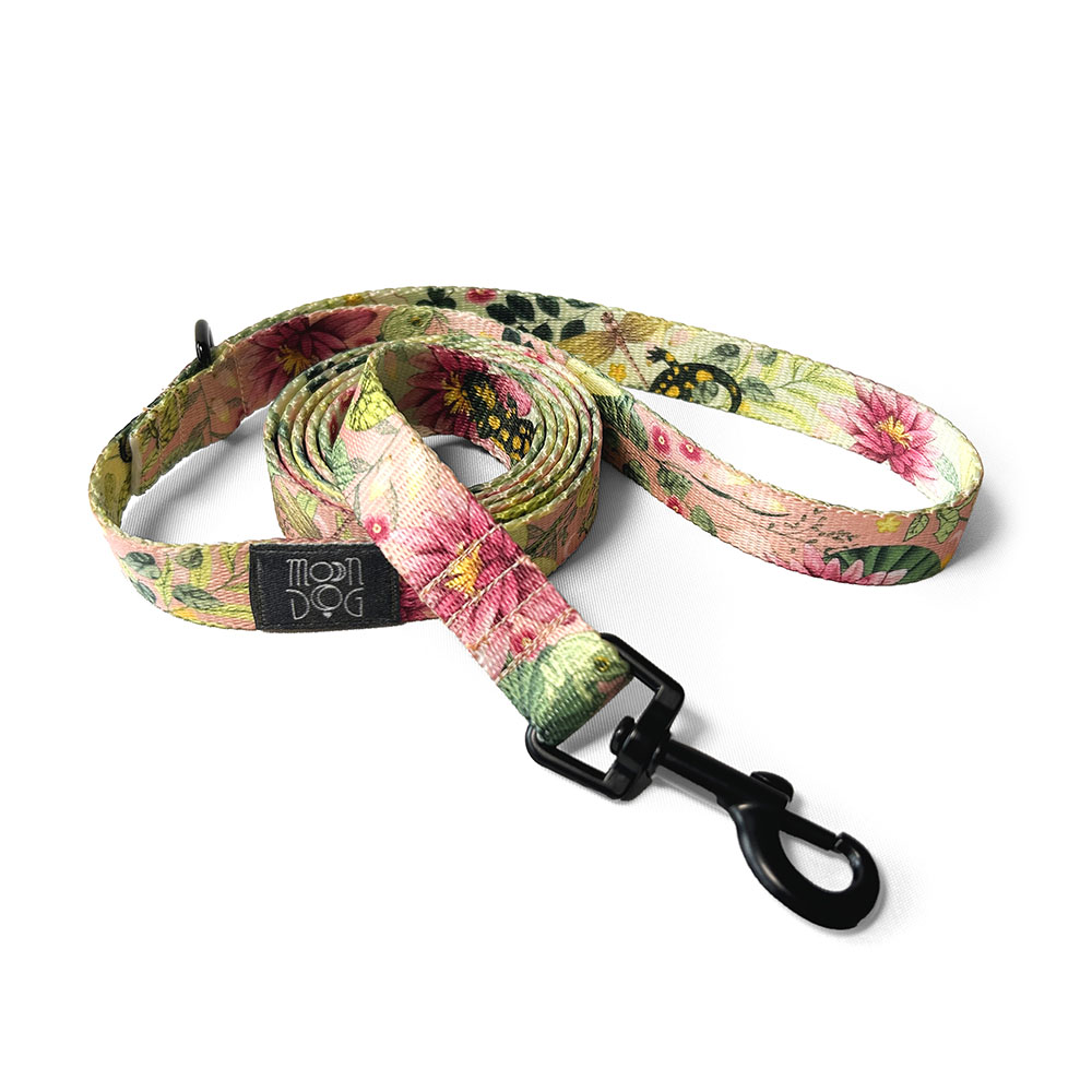 Smycze miejskie szyjemy z taśmy o szerokościach: 15 mm, 20 mm i 25 mm. Z opcją personalizacji możemy dopasować smycz dokładnie do Waszych potrzeb. Wzór LAKESIDE LILY w kolorze delikatnego różu inspirowany jest ekosystemem pięknej nadjeziornej scenerii. Lilie wodne, ważki, salamandry i różnorodne roślinne elementy jak z ogrodu japońskiego, tworzą kompozycję, która przenosi nas prosto nad jezioro w środku lata. Akcesoria z tym printem są nie tylko wygodne i trwałe, ale też pełne uroku. Idealne dla psów, które lubią przygody w plenerze i dużą dawkę stylu podczas każdej wyprawy.