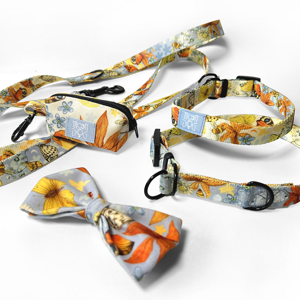 W MOONDOG sami projektujemy wzory na wszystkie akcesoria z naszej oferty. Proces ich powstawania zaczyna się od inspiracji zbieranych podczas codziennych spacerów, następnie tworzenia wielu szkiców składanych w całość, dodawania im kolorów i przenoszenia gotowych kompozycji na taśmy i tkaniny. Widok Waszych piesków w zaprojektowanych przez nas akcesoriach za każdym razem przynosi nam naprawdę wiele radości! Więcej o naszych wzorach przeczytać możecie tutaj