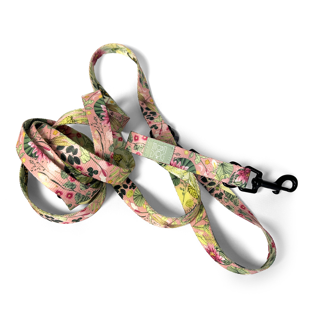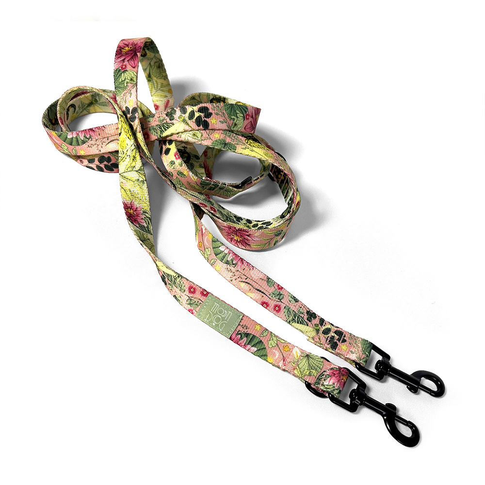 Wzór LAKESIDE inspirowany jest ekosystemem pięknej nadjeziornej scenerii. Lilie wodne, ważki, salamandry i różnorodne roślinne elementy jak z ogrodu japońskiego, tworzą kompozycję, która przenosi nas prosto nad jezioro w środku lata. Akcesoria z tym printem są nie tylko wygodne i trwałe, ale też pełne uroku. Idealne dla psów, które lubią przygody w plenerze i dużą dawkę stylu podczas każdej wyprawy.