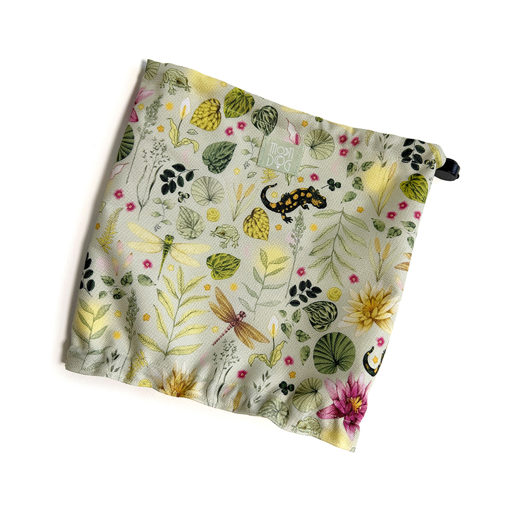 Outdoorowy snood dla psa wykonany z dwóch warstw wytrzymałej, cienkiej tkaniny Oxford zapewniający ochronę uszu i szyi podczas spacerów w deszczu i wietrze. Tkanina jest wodoodporna, ale nie wodoszczelna – chroni przed wilgocią i lekkim deszczem, zachowując komfort użytkowania.