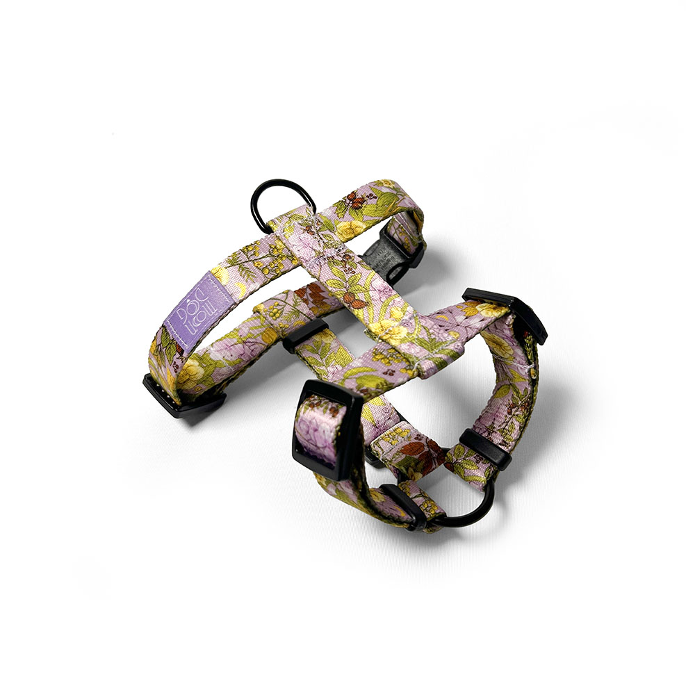 Szelki typu guard szyjemy w rozmiarach od XXS do L, w szerokościach taśmy: 15 mm, 20 mm i 25 mm. Wzór SEPTEMBER VIOLET w lawendowym kolorze to wrześniowa, otulona ciepłymi, jesiennymi kolorami łąka. Na princie znajdują się rysowane odręcznie motywy dzikiej róży, wrotyczu i delikatnych, fioletowych dziko rosnących kwiatów geranium. Barwy powoli przechodzą z letnich tonów w odcienie wczesnej jesieni. Jest to wzór z pogranicza dwóch pór roku dla wszystkich, którzy kochają spacery wśród kolorowych drzew i lubią przyglądać się coraz wcześniejszym zachodom słońca.